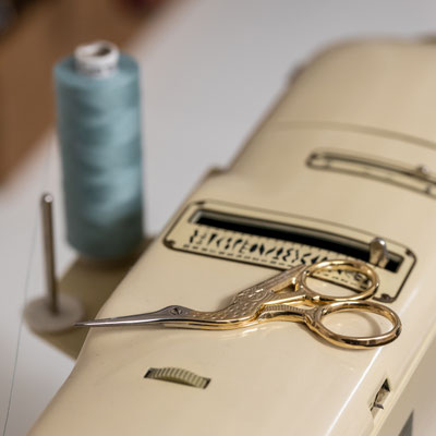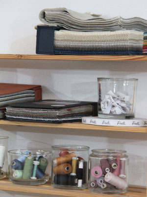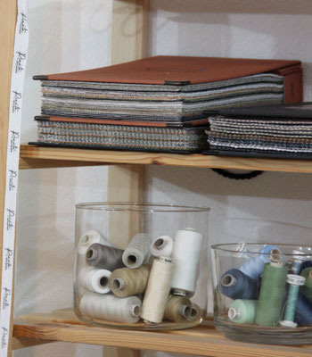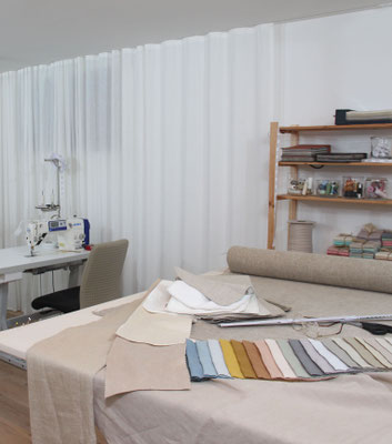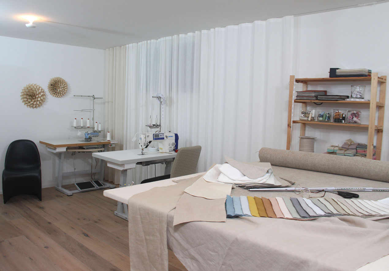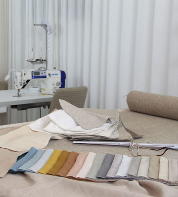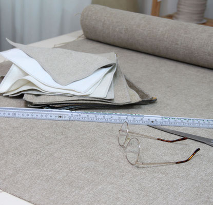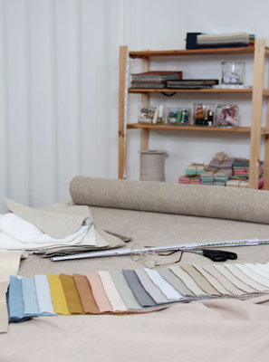 Hier verarbeite ich die ausgewählten Stoffe zu individuellen Wohntextilien.