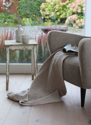 Die Plaids sind an den langen Seiten bewusst nicht gesäumt, um das schöne Webendezu zeigen. Das gibt dem Plaid einen speziellen Look!